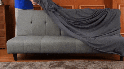 - Extienda la funda: Despliegue la funda cuidadosamente sobre el sofá cama cerrado, cubriendo toda su estructura y alineándola con los bordes.