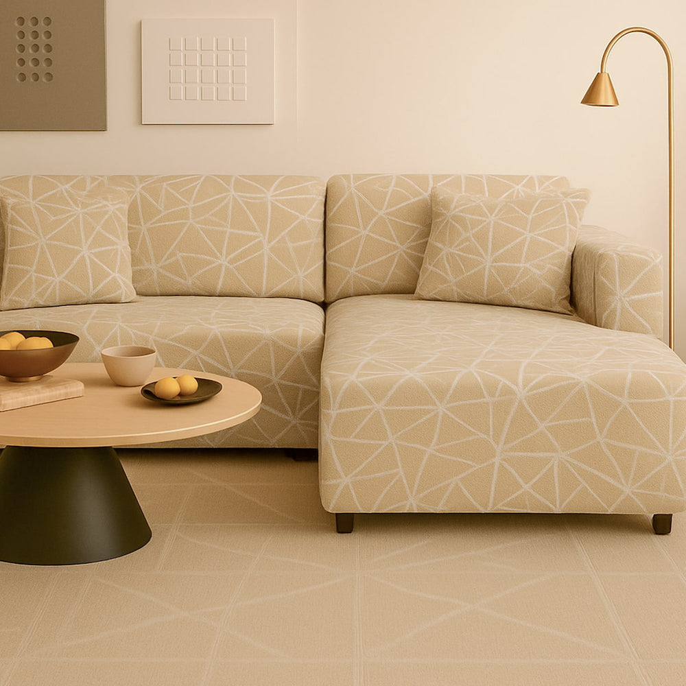 - 2. Cubra el sofá por completo, ajustando la funda para que se ajuste bien a la forma.